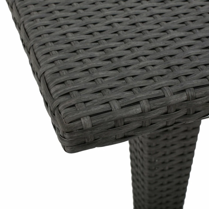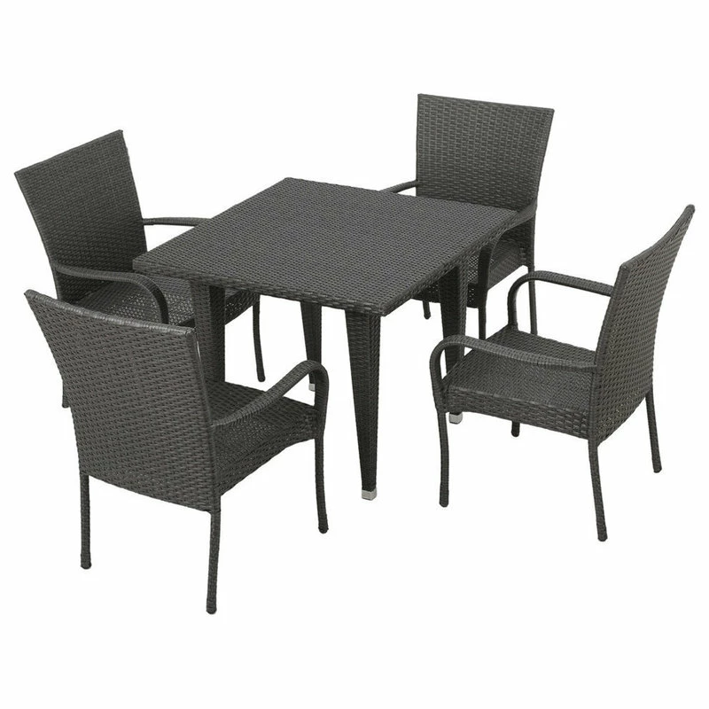 Enjoy outdoor dining and relaxing with the Antonio dining set. Constructed out of beautiful wicker, this table and chair combo is durable and comfortable. This design will go well with any garden or backyard arrangements and landscaping. Plus its stack-able chairs can make storage and transport a breeze.