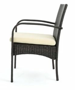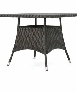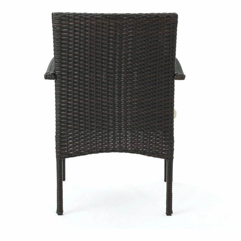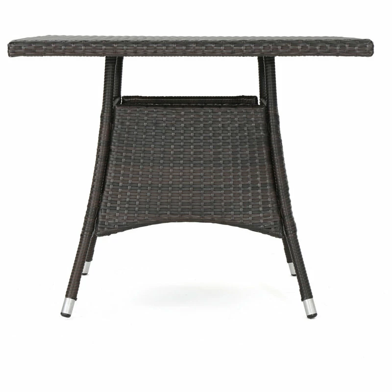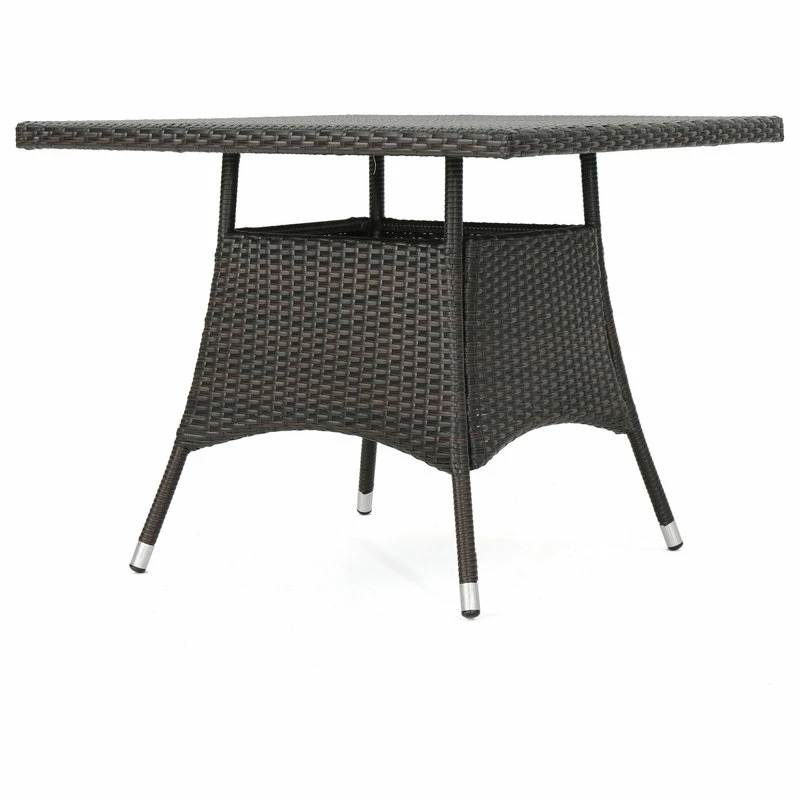 Enjoy the outdoors or poolside with the Carmela 5pc Dining set. Constructed from multi-brown all-weather wicker, this set includes one (1) square table and six (4) dining chairs. Perfect for enjoying outdoor meals, this set can be placed in your backyard, deck or poolside area.