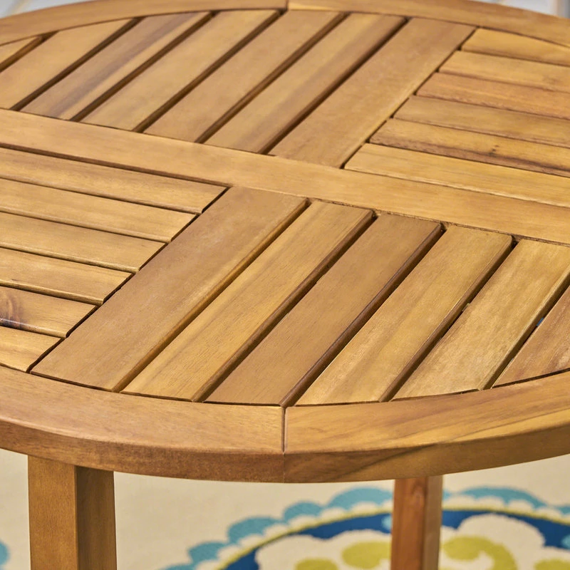 ACACIA WOOD: Featuring an acacia wood frame and a weather-resistant finish that provides sturdy structure and durability, this set brings a modern look to your patio or backyard while giving your outdoor space a natural feel.