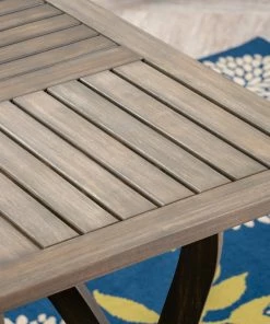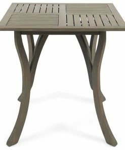 Enjoy this stylish outdoor acacia wood table, prefect for any patio set up. Feature a beautiful teak finish, this square table is a wonderful addition. The smooth lines of the legs give the table a calm, stylish look that complements the perpendicular wooden slats featured on the table top.