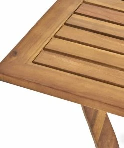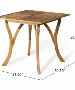 Enjoy this outdoor acacia wood table, prefect for any patio set up. Featuring a beautiful teak finish, smooth lined legs, and a wooden slated tabletop, this table will compliment any patio style. This table is a must have.
