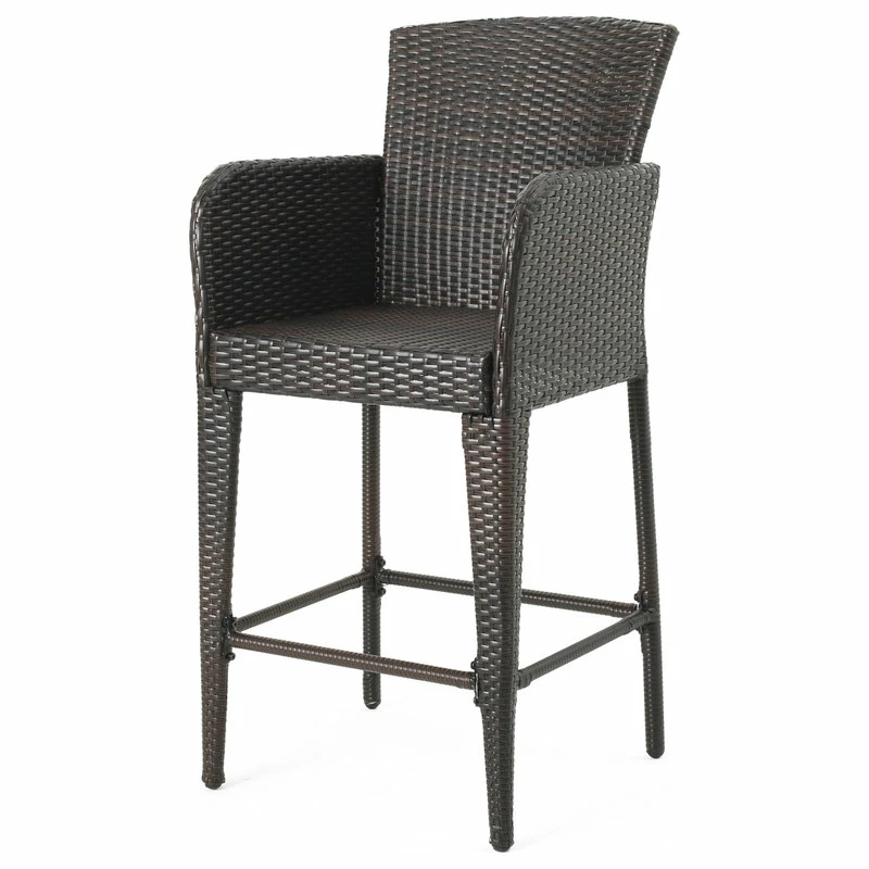 These wicker bar stools are a great addition to any outdoor patio set. Featuring an iron frame wrapped with wicker, this stool is ideal for any outdoor bar sets, and is perfect for providing extra seating for your patio area. These stools also come complete with foot rails that are perfectly located for resting your feet while seated, rather than letting them hang. Perfect for any occasion, the barstools are a must have.