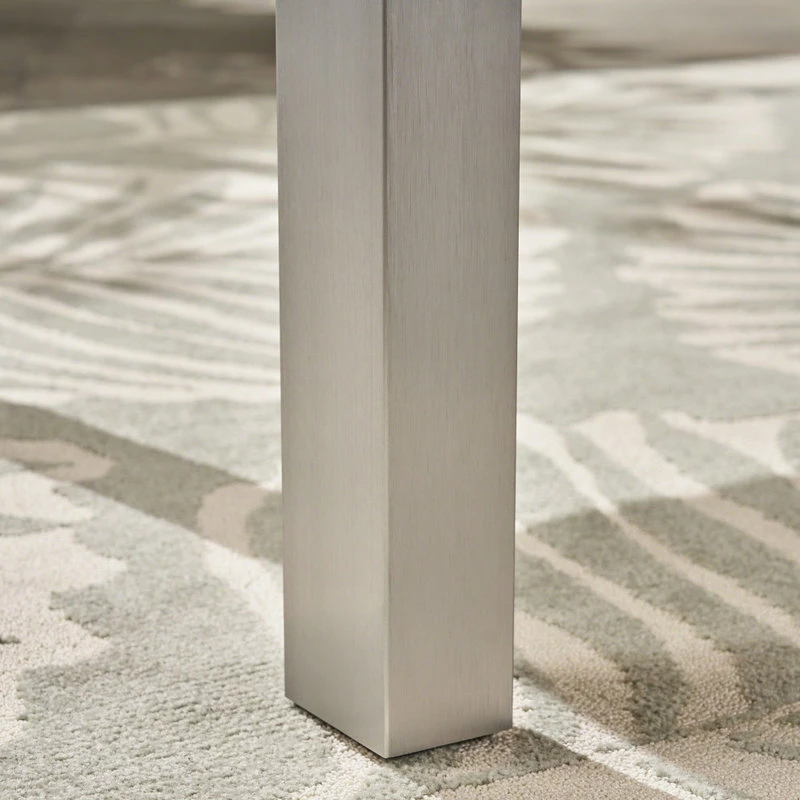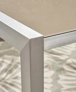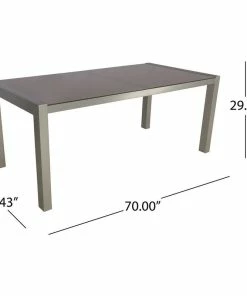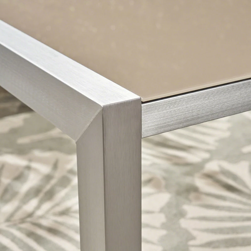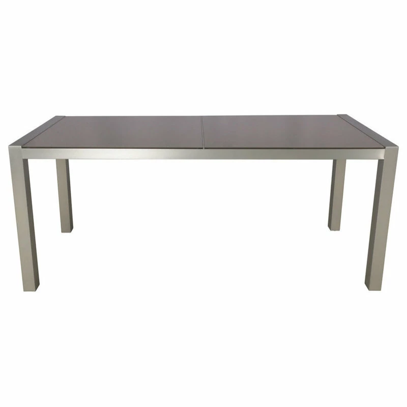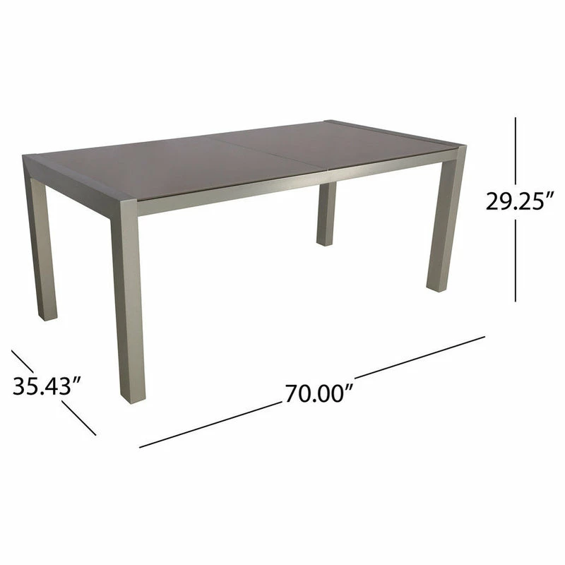 Give your outdoor set-up a sleek new look with this aluminum dining table set with a tempered glass top. Long enough to seat you and all of your favorite invitees, it’s sure to be the setting for many memorable get-togethers years down the line. Its smooth surface makes even the most casual meals feel luxe and keeps clean-up a total breeze.