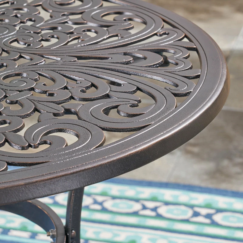 Modern convention can be so dull. Turn back the clock with something a little more vintage; this table will bring you back to simpler, more elegant times. Its durable aluminum frame and shiny finish will be able to stand up for years even under the harshest conditions. The best place to share a cold pitcher of sparkling lemonade with a friend in the garden.