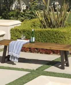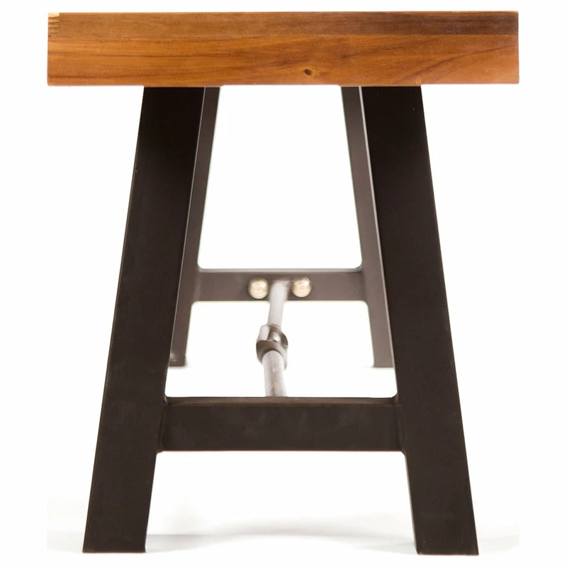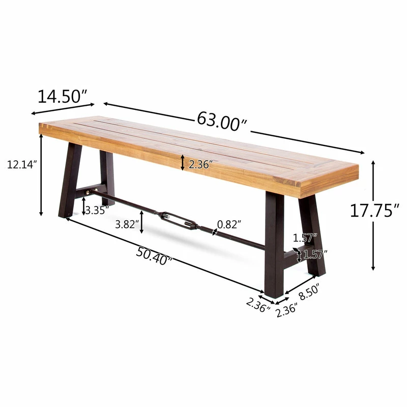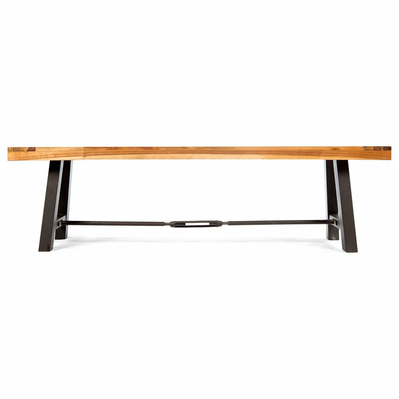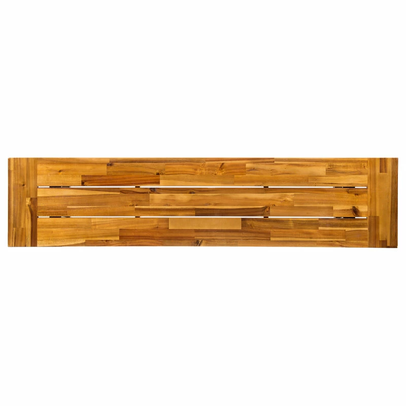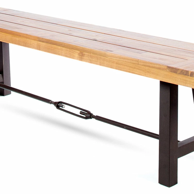 Offer your outdoor seating ensemble an addition that you will not regret. Our sophisticated slat-panel bench brings a perfect amount of stylish comfort and modern industrial aesthetics to your backyard or patio. Featuring a durable powder-coated metal frame and a finished rich acacia wood top, our bench is an excellent piece for your outdoor decor. With enough space to accommodate a scenic picnic meal or a casual outdoor barbeque, our bench allows you to enjoy the refreshing touch of nature.