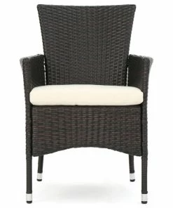 The Clementine Outdoor Brown Wicker Dining Chairs are made out of rich, brown PE wicker that will complement any nearby landscape. The all-weather wicker allows these chairs to last in any weather condition with little maintenance, and the water resistant cushions provide added comfort, and are easy to maintain. These sturdy chairs are also stylish and can be placed together or coordinated with any outdoor dining set.