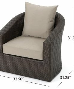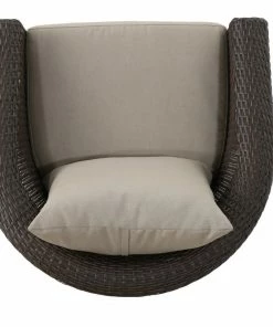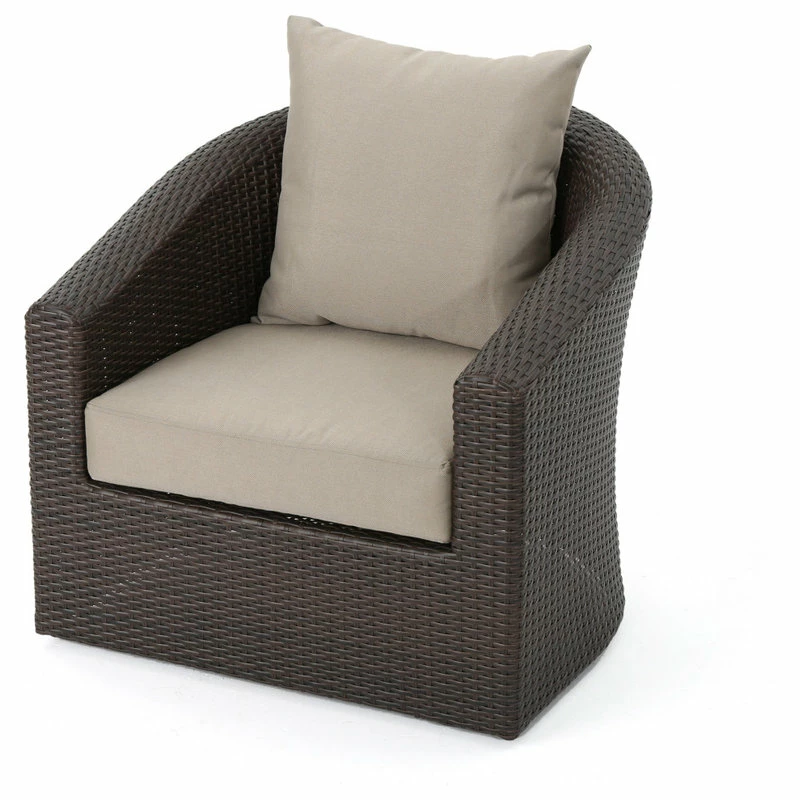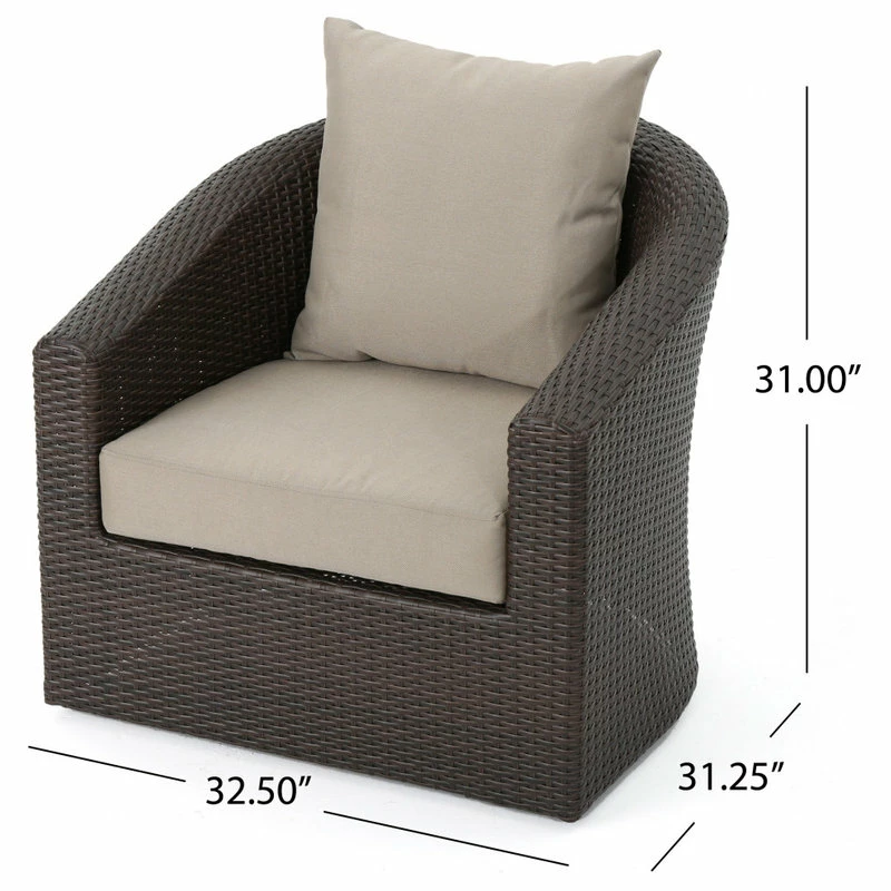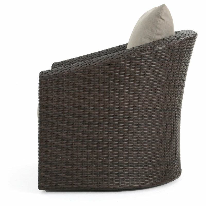 The perfect chair for lounging outdoors, this piece combines the classic looks of wicker furniture with the utmost in comfort and functionality. The plush cushions and swivel base offer something that other outdoor furniture doesn’t. Use it by the pool, on a patio, porch, or anywhere you need a place to relax outdoors.