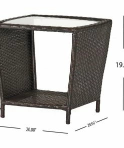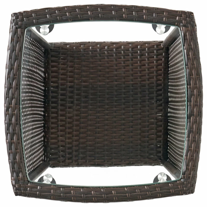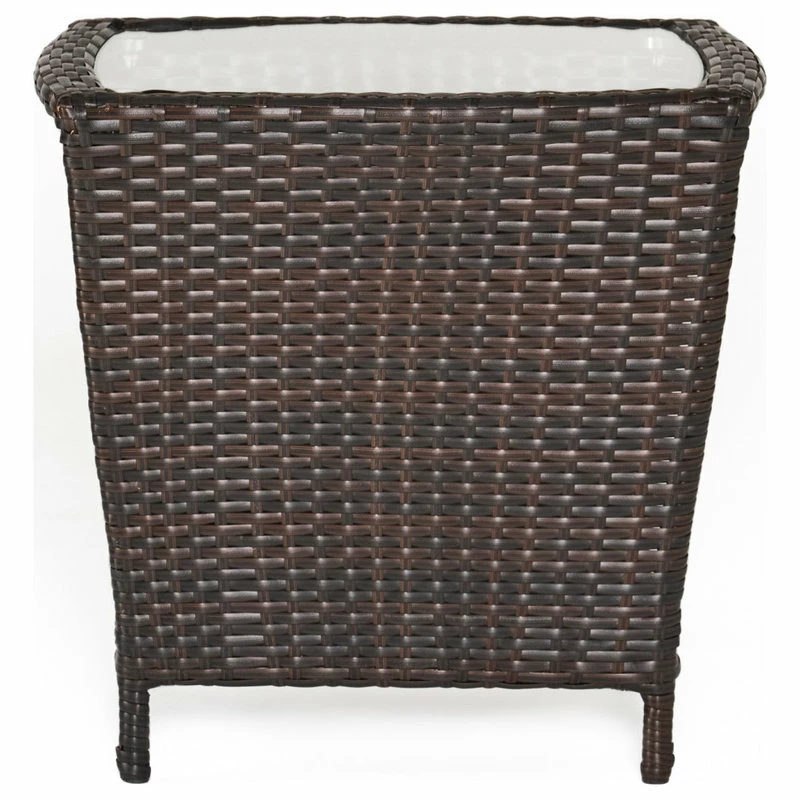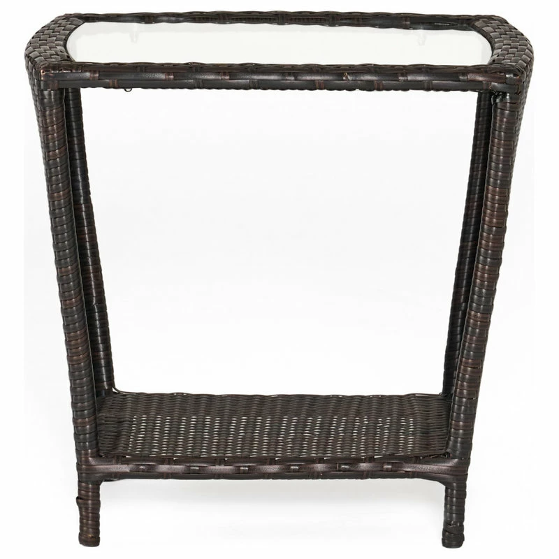 The Easton outdoor outdoor wicker accent table is stylish and convenient for your outdoor needs. You can place this table poolside or near your seating area to serve snacks and beverages on top of the glass table top. The bottom compartment can be used to hold your plants or other items.