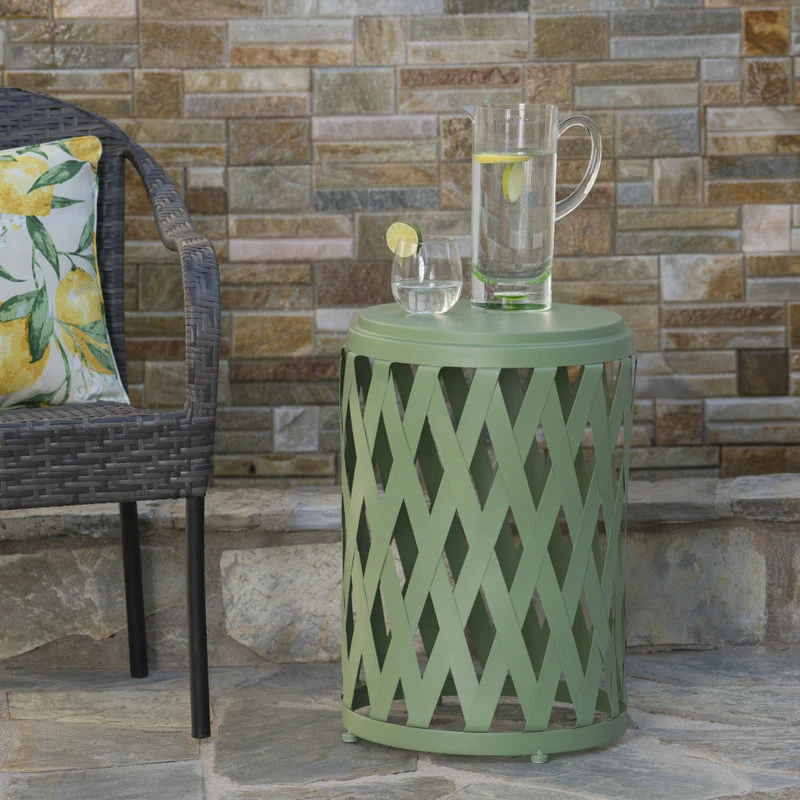 A TOUCH OF PERSONALITY: Our accent table uses thin strips of metal to form a beautiful lattice pattern that is sure to enliven any patio, deck, porch, or backyard. This charming design is a perfect companion for your outdoor seating.