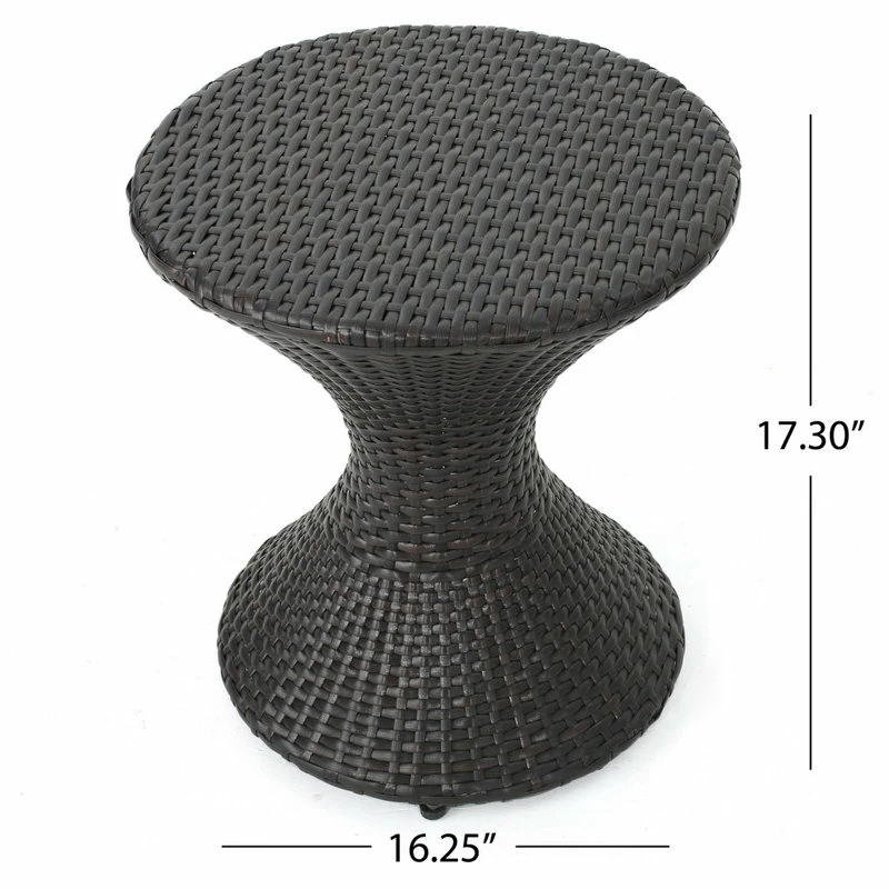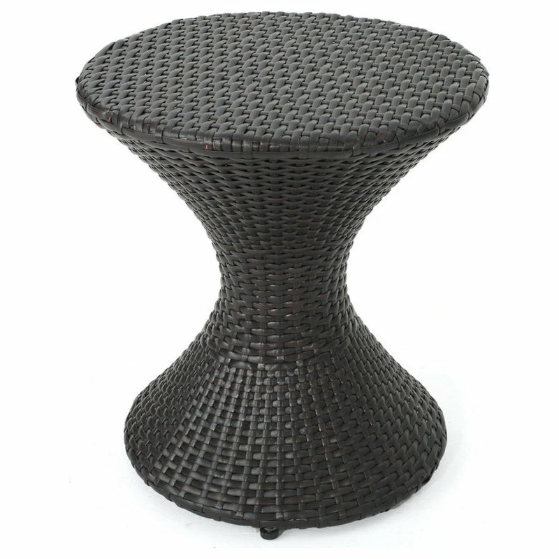 This attractive, hourglass-shaped side table ensures that you will always have a place to set down everything you need for an afternoon spent enjoying the outdoors. Made from the highest-quality wicker over a durable iron frame, it balances durability with aesthetics. A perfect addition to your garden, patio, or backyard.