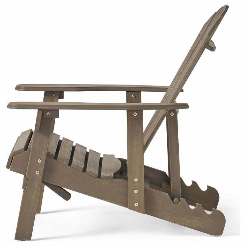 Enjoy lounging with your feet up with the Katherine Reclining Wood Adirondack Chair with Footrest. You can read your favorite book or watch your favorite movie while relaxing on this chair with included footrest. Made with Acacia wood, this chair is sure to provide enjoyment for years to come.
