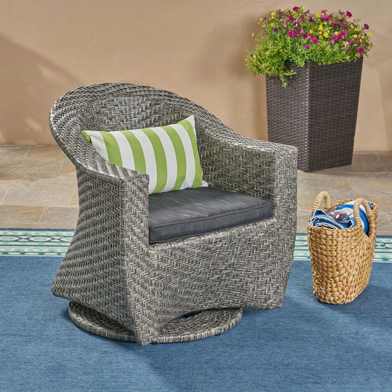 Leave your loved ones’ heads spinning in the best way possible with this wonderfully swiveled wicker chair. Composed of stylishly woven rattan and cushioned comfortably with stain-, fade-, and water-resistant fabric, it will no doubt be the seat that everybody at the party will be fighting over. The perfect chair to cluster around a table weighed down heavily with a delicious meal or a roaring, romantic bonfire. Never leave a guest without a place to sit again.