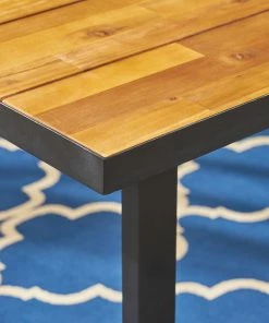 In a daring combination of acacia wood and iron, this modern outdoor dining table will be sure to please all those invited to enjoy a meal together over it. Upscale elegance comes together harmoniously with clean, unadulterated design; this piece’s contemporary, slatted top is sealed to protect its surface against spills and stains, which means clean-up after dinner will be an absolute breeze.