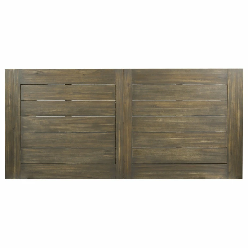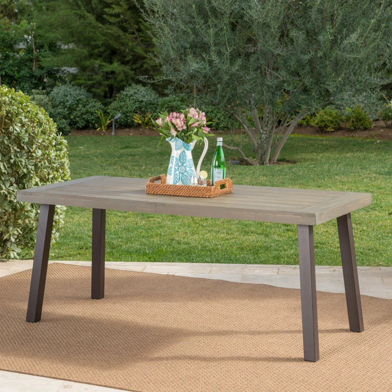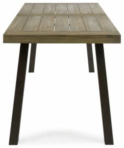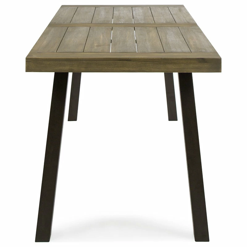 Enhance your outdoor space with a timeless appeal that will match your choice of seating. From dinner parties to hearty meals with your family, our dining table will have you covered for all sorts of occasions. With beautiful slat paneling, our table uses minimalistic lines to create an edgy look. Featuring a rich acacia wood tabletop, our dining table offers your interior space a modern industrial look so that you can eat with sophisticated style.