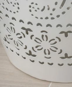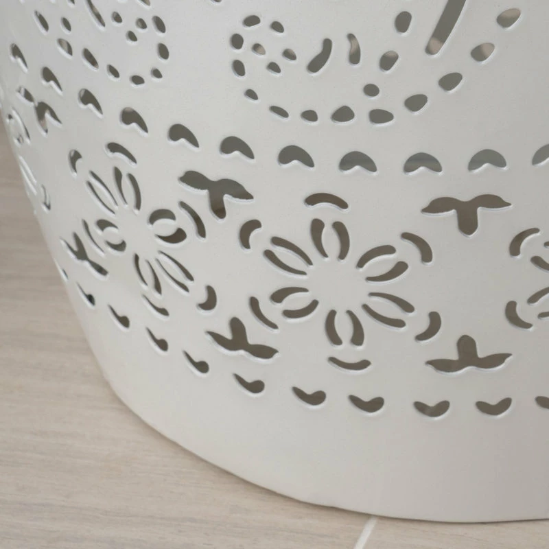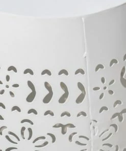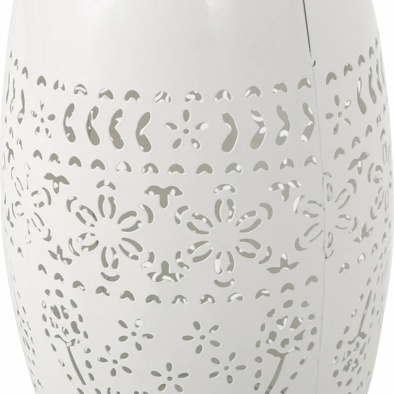 Whether youโre using this in your backyard space or in your living room, combine this accessory with your favorite chair to create a cozy corner. With a sleek, modern barrel structure, this end table is an excellent sidekick to your existing outdoor or indoor furniture, perfect for holding a tray of snacks or a pitcher of lemonade. The frame of our side table features a beautiful lace cut pattern, making this great for any area in need of something new.
