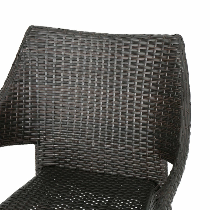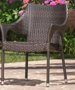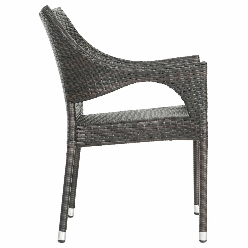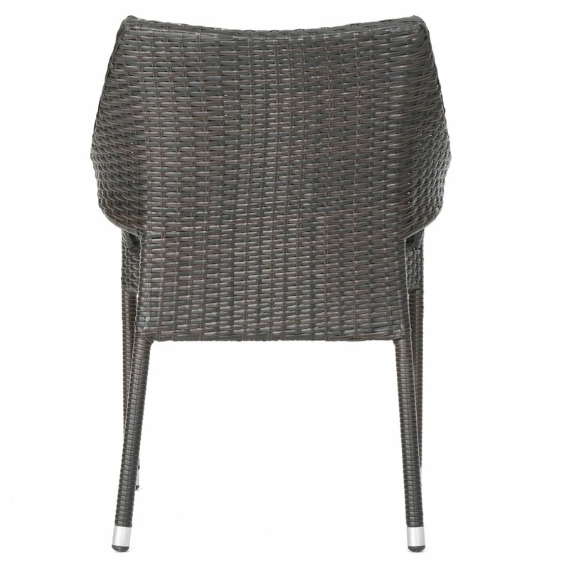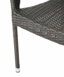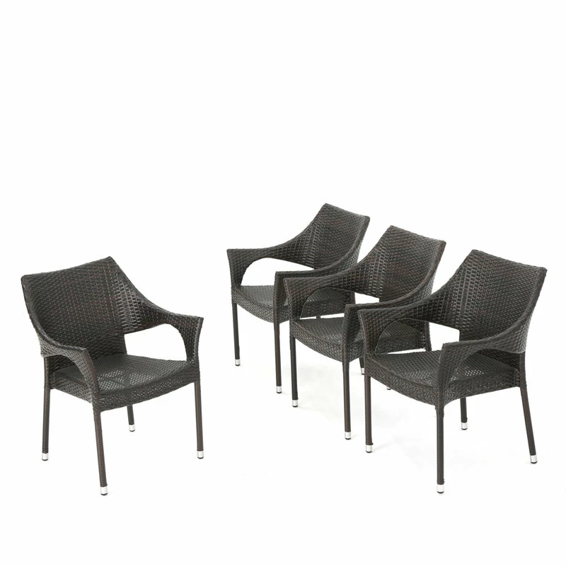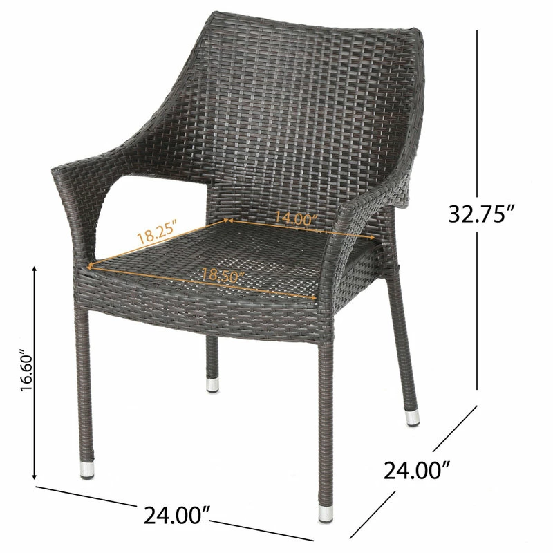 Give yourself a beautiful viewpoint from which to enjoy your backyard with our stylish outdoor dining chair set. A detailed wicker finish adds texture, comfort, and contrast, and silver-tipped feet add subtle shine. Boasting clean, simple, modern curves and lines, these chairs are crisp, chic, and contemporary. A stackable design ensures that these chairs truly are as cozy and practical as they are pretty and refined. These chairs are as beautiful as they are durable, so they�re an ideal addition to any outdoor space.
