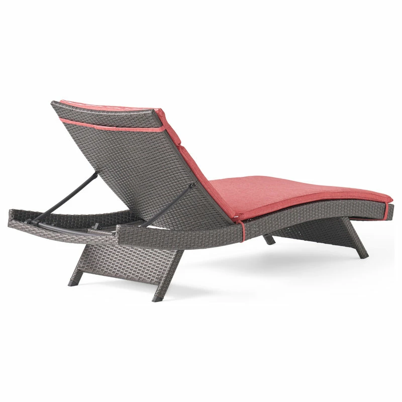 Add some stylish comfort to your patio decor with this wicker lounge set. These lounges are weather resistant and have an adjustable back and folding legs for easy stacking.