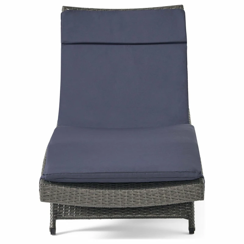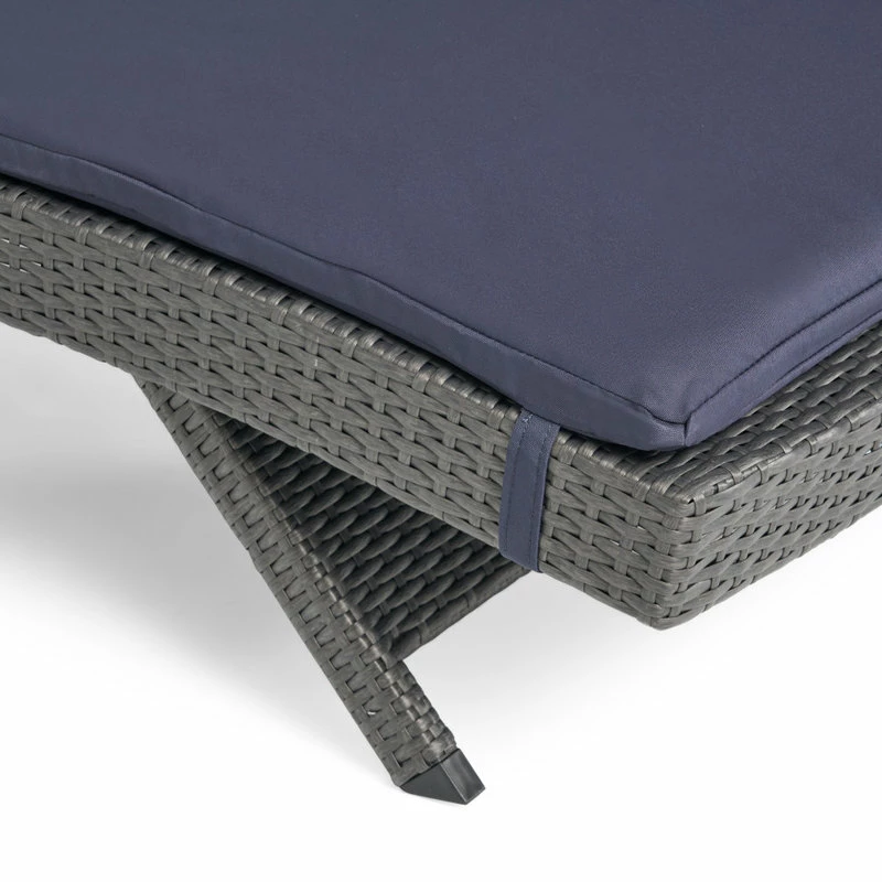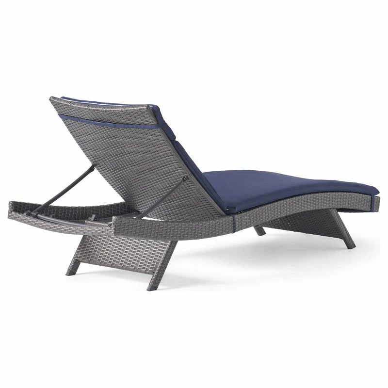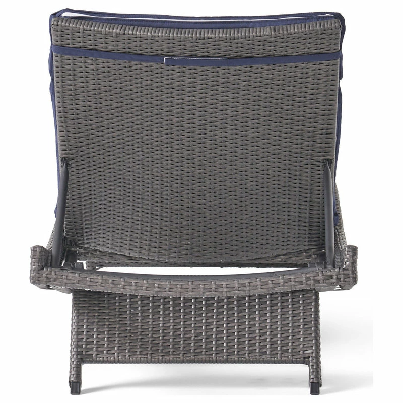 Add some stylish comfort to your patio decor with this wicker lounge set. These lounges are weather resistant and have an adjustable back and folding legs for easy stacking.