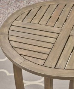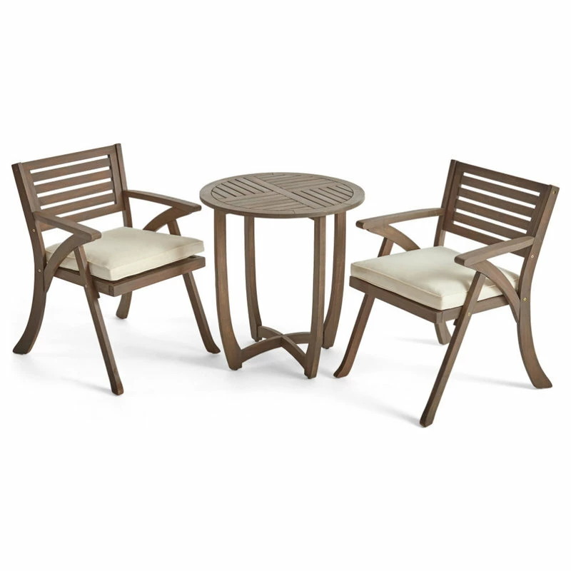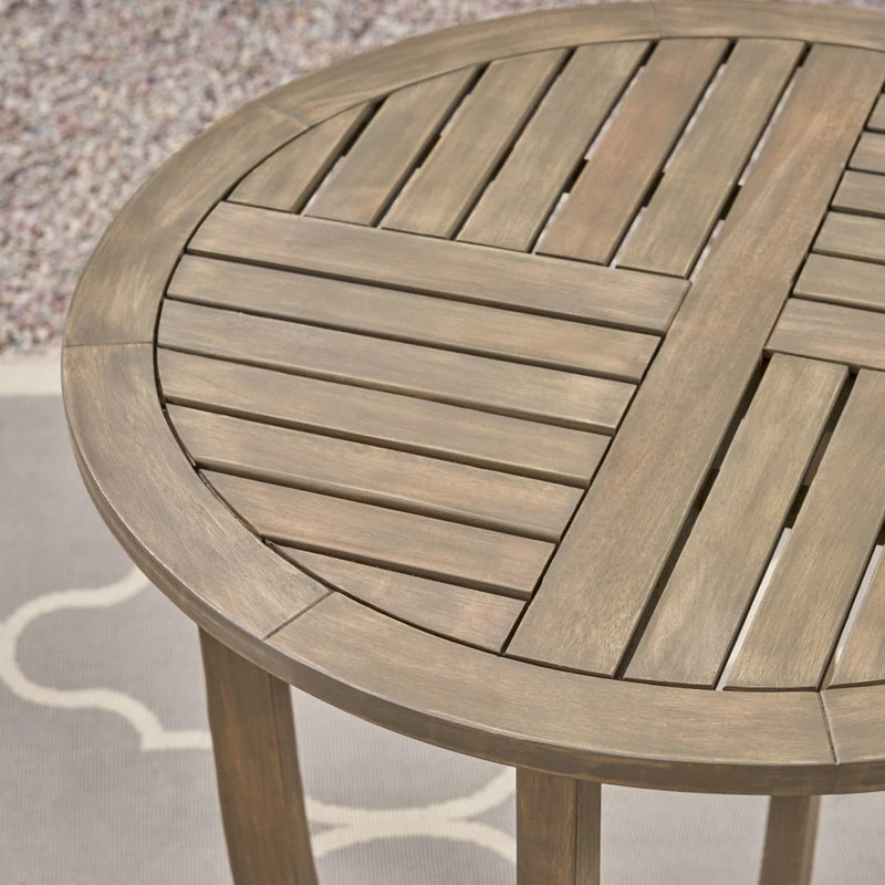 Make any outdoor patio area feel like an exclusive island resort with this acacia wood bistro set for two. Right at home both on the deck or nestled in the garden. Sleek and fashionable in design. This smart and chic bistro set is compact, weather resistant, and pleasing to the eye.