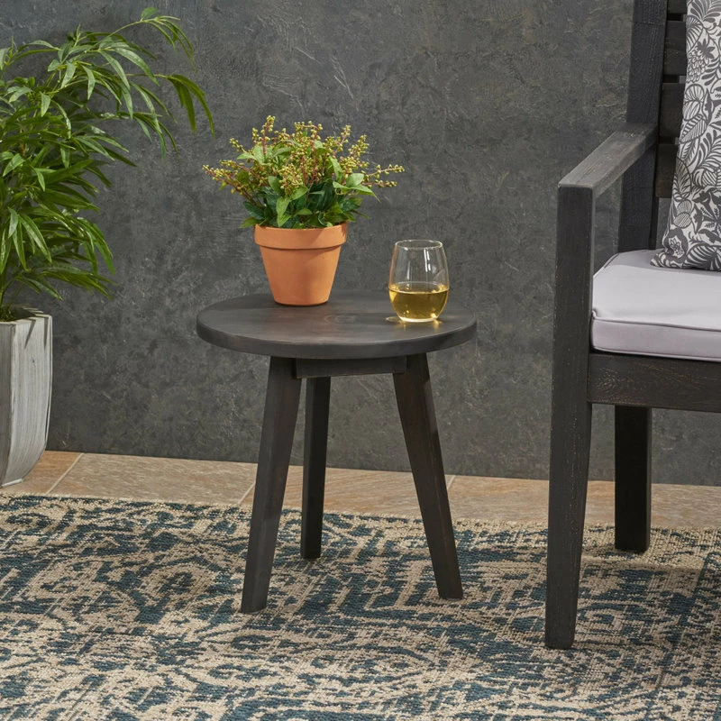 Indulge your inner mod with this funky little end table. With a trendy round top and three legs that jut out cheekily, this piece will surely give your home a bit of youthful rejuvenation. Handcrafted lovingly from acacia, the top is available in the finish of your personal preference. Great for the bedroom, living room, or any other area in need of something new.