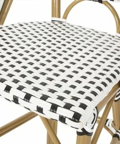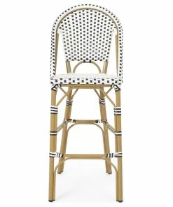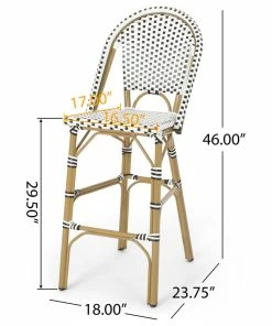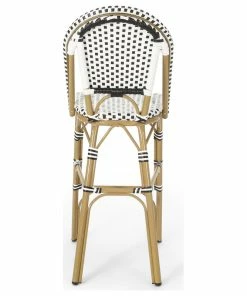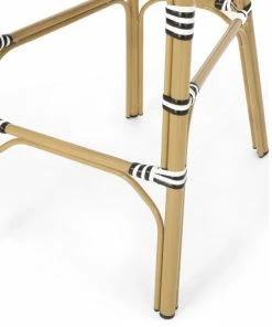 Take a seat in streamlined style that will have you feeling like you are enjoying a fresh cup of coffee or chilled drink at your favorite cafe. Composed of smooth bamboo finished aluminum frames and stunning wicker weave seating, these eye-catching French-inspired barstools will complement any outdoor bar or dining set up, bringing a subtly upscale flair to even the most unassuming home. Each stool is crafted with precise durability that strikes a perfect balance of classic charm and modern sophistication for all to admire.