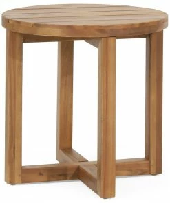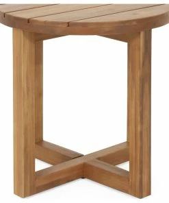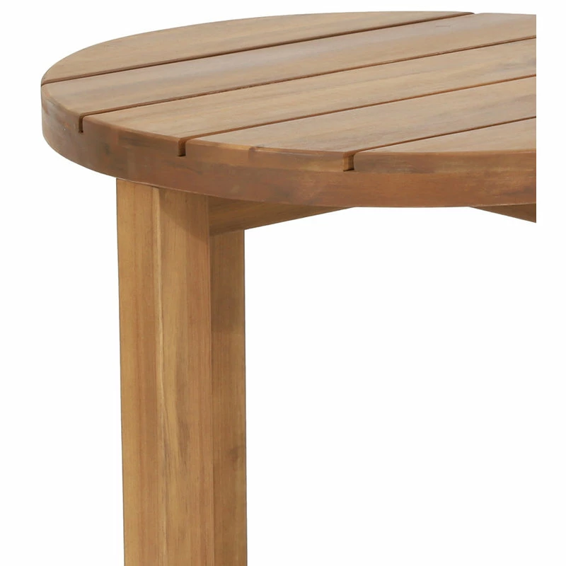 Complement your backyard or patio with a charming sidekick. Ideal as an end table next to your favorite seating ensemble or as an accent piece for your decor, our side table offers outstanding aesthetics and reassuring sturdiness for your outdoor space. This accessory will blend seamlessly into any space with its classic slat paneling and circular tabletop. Featuring a standard cross-stretcher base and crafted with rich acacia wood, our side table will offer convenient and stylish table space for your chilled drinks.