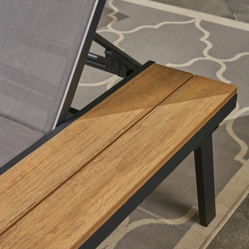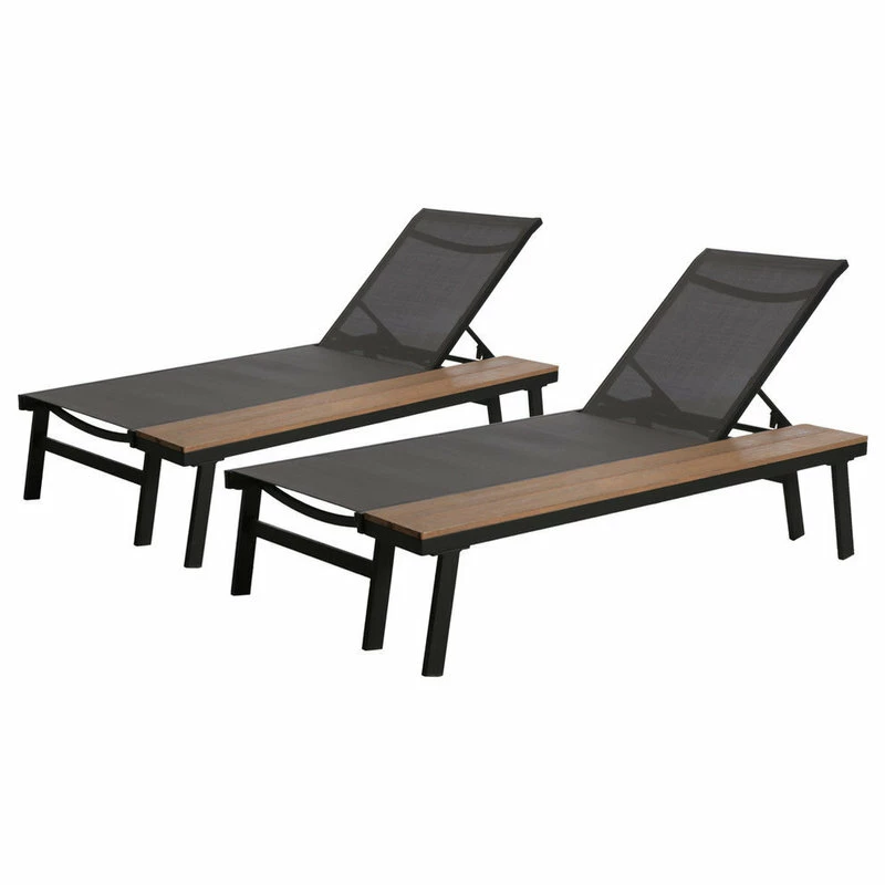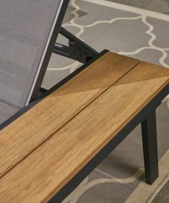 Lay back and enjoy the summer sun in a chaise lounge set that brings excellent style to any outdoor dรฉcor. Featuring a built-in side table made with eucalyptus wood, these lounges offer convenient space to set your items such as a refreshing drink or a bowl of snacks. Not only do these chaise lounges bring unparalleled style to your outdoor space but it also offers breathable outdoor mesh that provides ultimate comfort for you and your guests, allowing you to enjoy summer to the fullest.