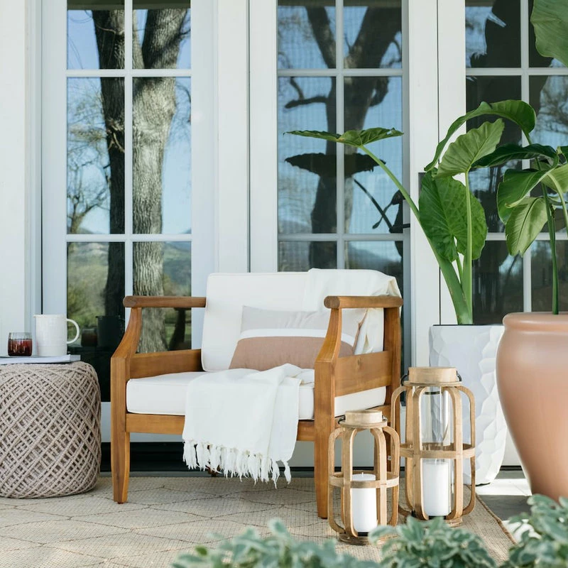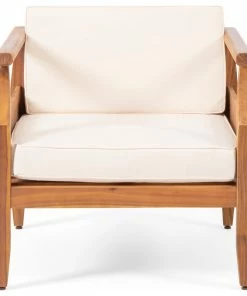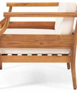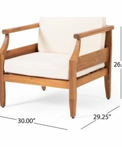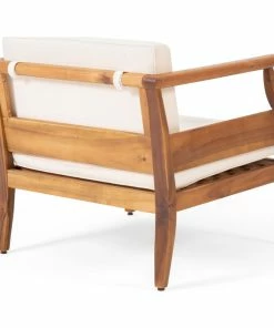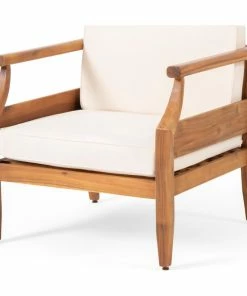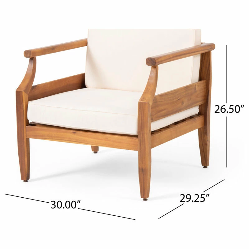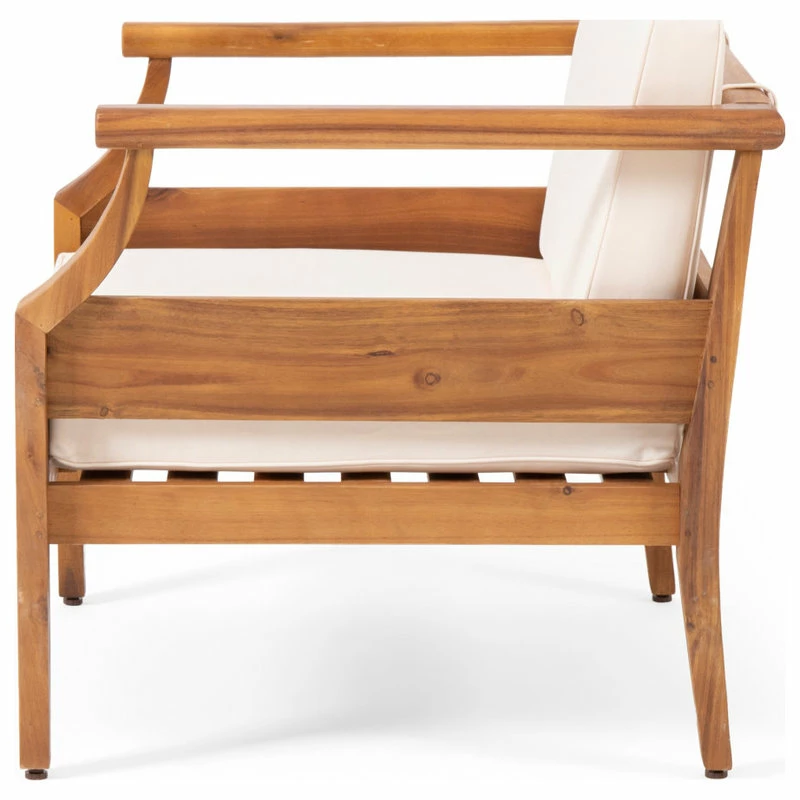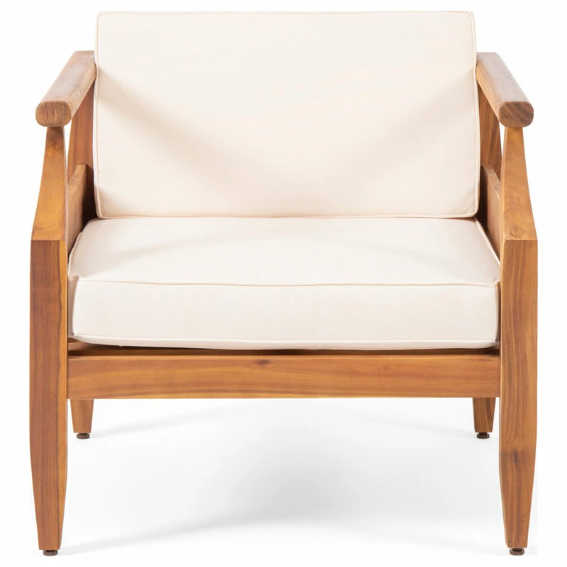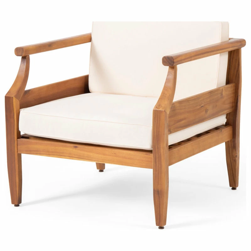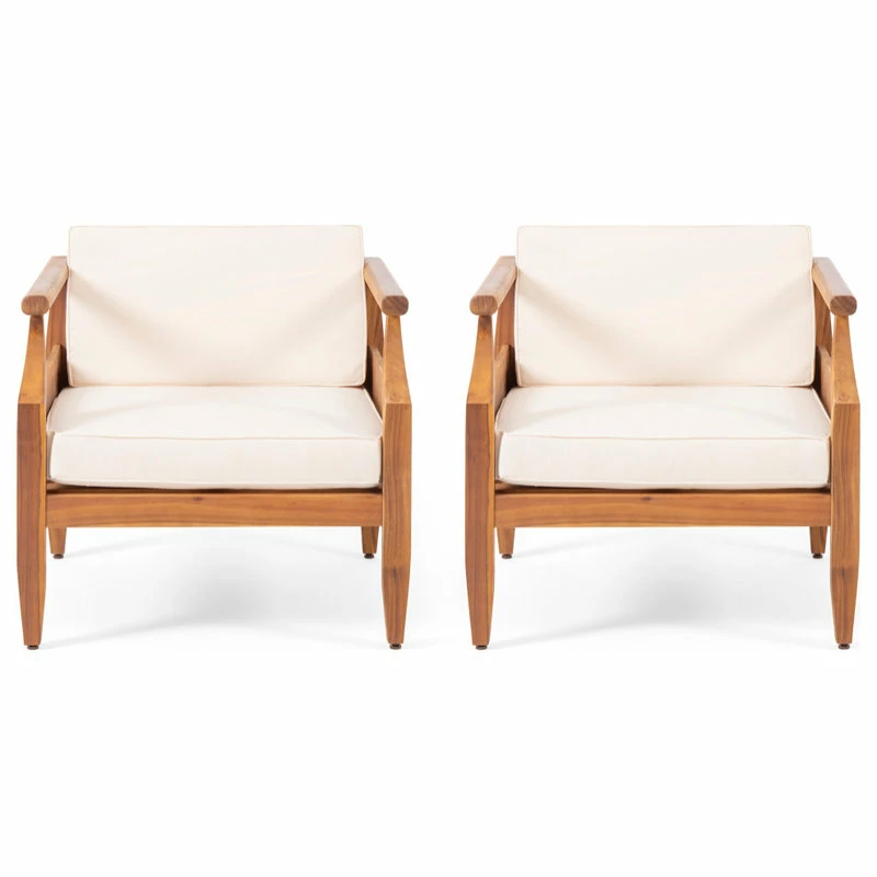 Enjoy the outdoor breeze and warm sunshine in a set of club chairs that offers your backyard or patio sophisticated style. Our club chair set features a sleek design, including lovely recessed arms and open slat seating for a breezy look. Finished with a rich acacia wood frame and water-resistant cushions, these chairs offer a sturdy place for you and your guests to rest comfortably. Your outdoor space will thank you for making the most of your ensemble with this perfect set of chairs.