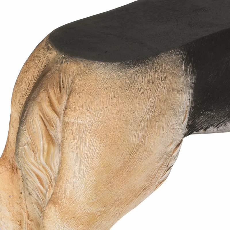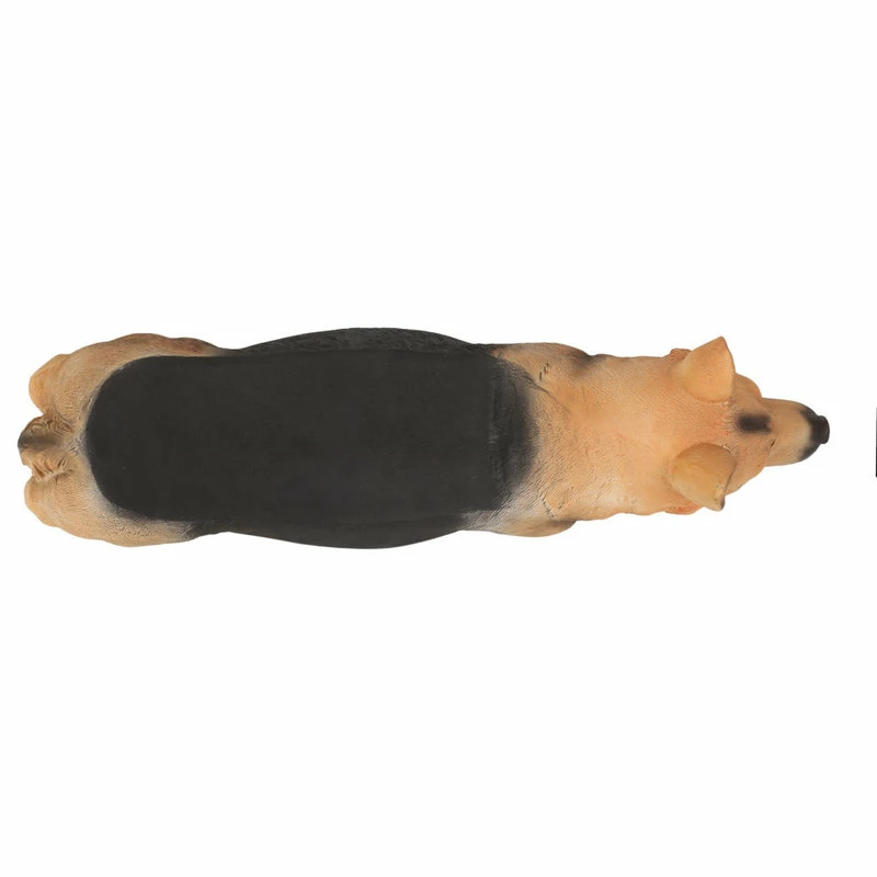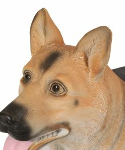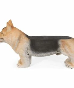 Make your outdoor space fun and inviting with select accessories that are sure to impress. Carefully crafted from lightweight concrete, our German shepherd dog shaped bench features an incredible design consisting of gorgeous details such as textured fur, curved paws, and adorable facial features. This one-seater bench offers a durable structure and weather-resistant properties making this a perfect addition to your backyard or patio space. Finished with warm brown and black colors, this charming bench will easily bring your decor to the next level.