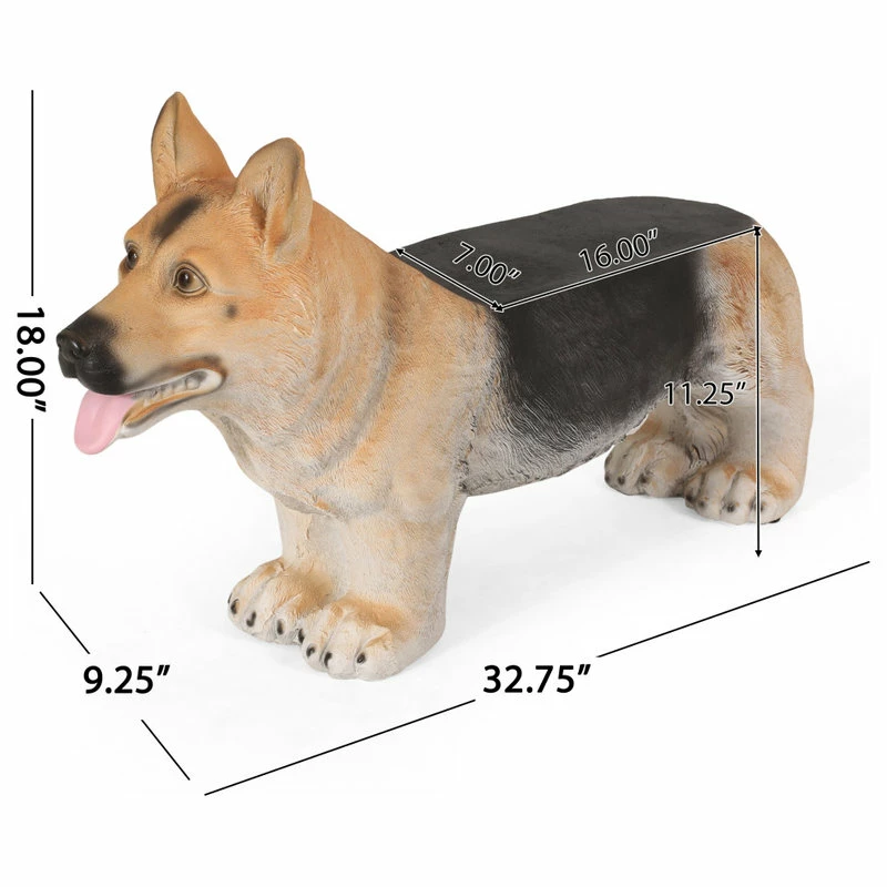 - GERMAN SHEPHERD DESIGN: Our bench features a lovable German shepherd dog design, giving your outdoor space a breathtaking accessory. This animalistic design offers intricate details, such as detailed facial features and paws, for a hand-crafted touch.