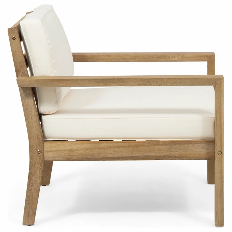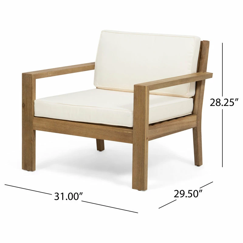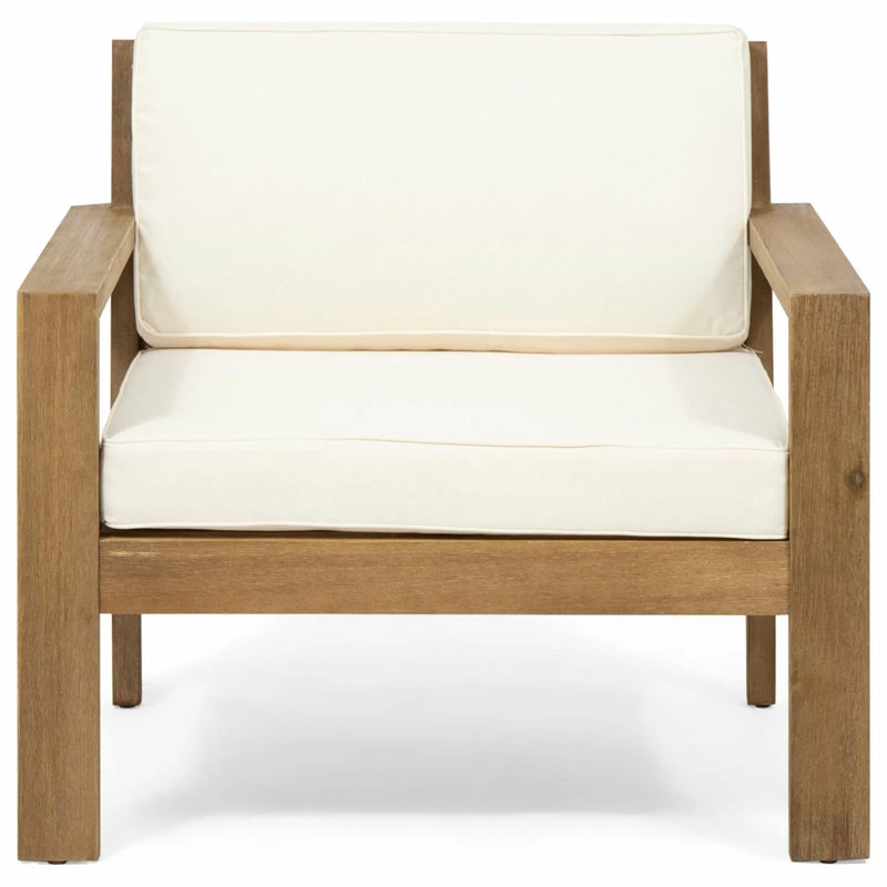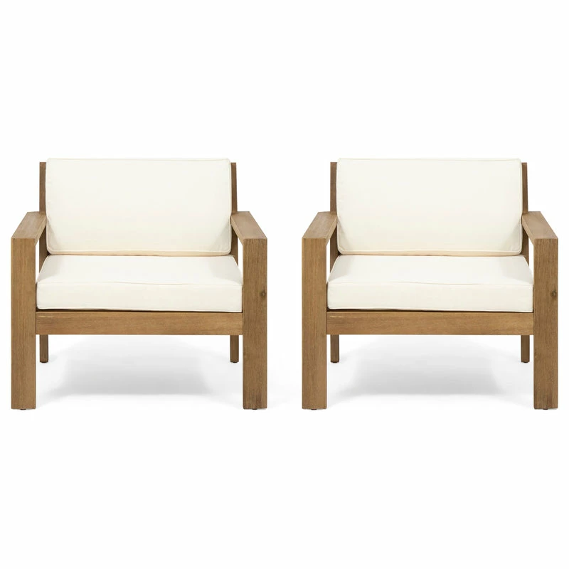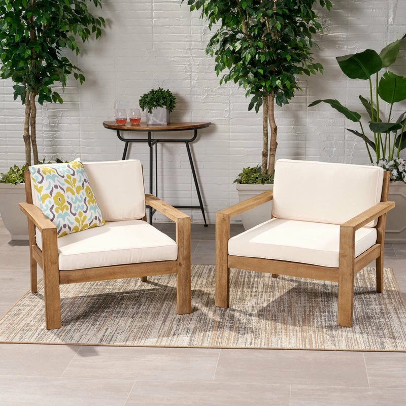 Whether you are looking to host an afternoon hangout with a close friend or just looking for a place to stretch out with a good book, this club chair set is perfect for you. Featuring a smooth slat panel design and delightful water-resistant cushions, this set offers a breezy and classic look for any backyard or patio space. These chairs are made with acacia wood and are completed with a stunning wire brushed finish, establishing incredible durability and offering a beautifully textured look to your outdoor space.