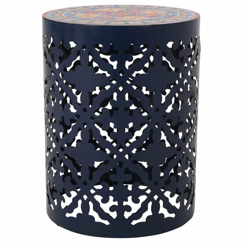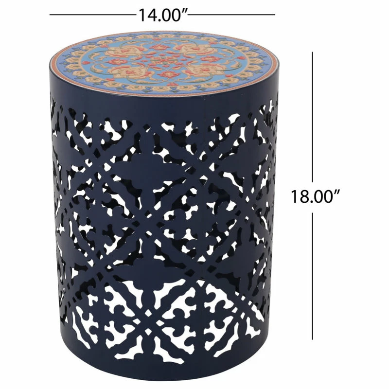 Mix style and function to create a trendy accent for your outdoor space. With a charming cylindrical structure and lace cut design, this end table is an excellent sidekick to your outdoor furniture, perfect for holding a tray of snacks or a pitcher of lemonade. This features a gorgeous tile mosaic tabletop that brilliantly blends a traditional touch with a sleek modern look. Also providing incredible stability, our accent table will have no problem keeping your patio in style all summer long.