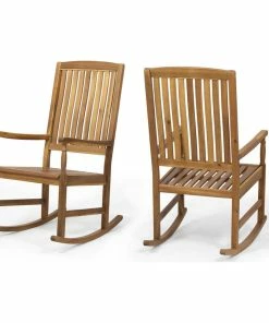 Settle back in the refreshing outdoors with a rocking chair set that allows you to set up a cozy corner for well-deserved relaxation. With traditional slatting in the backrest and seat, this set is a beautiful classic upgrade for any decor. Featuring a gorgeous acacia wood frame, our set brings both incredible comfort and a homey vibe to your outdoor space. This set is finished with a gentle rocking design that creates a soothing motion for you to enjoy your deck or porch space in style.