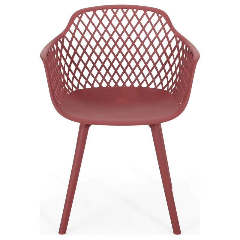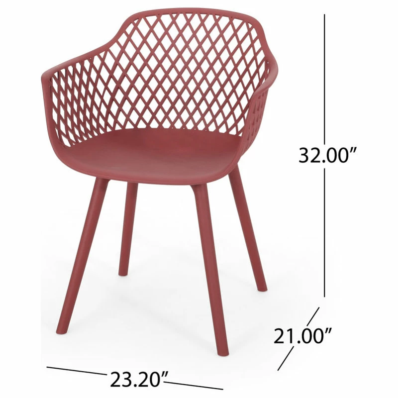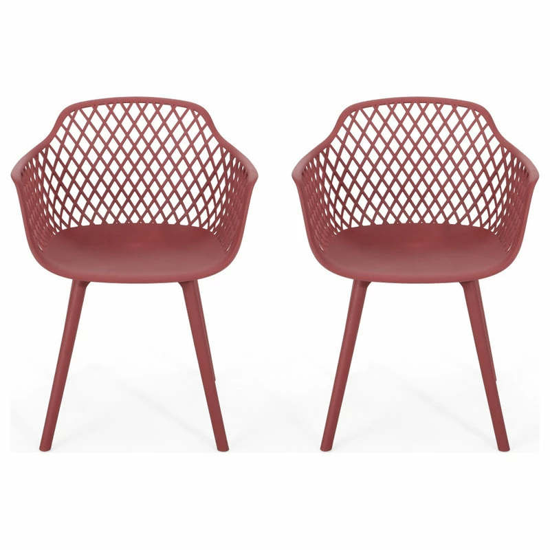 Upgrade your outdoor dining experience with a set of chairs that brings both function and style to your home. Featuring weather-resistant properties and a unique plastic blend material, our outstanding outdoor dining chair set provides astonishingly stable frames that will last you for years to come. This minimalistic design balances clean-cut lines and a diamond mesh pattern to create an impressive look of sturdy structure and stylish comfort. Finished with a modern vibe, our chair set is sure to transform any backyard space into a refined masterpiece.