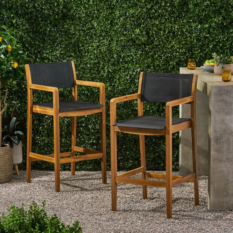 Perch in absolute style with a set of barstools that will bring out the best of any outdoor space with effortless and irresistible charm. Composed of rich acacia wood and sleek outdoor mesh, these classy and understated stools will complement any outdoor bar or dining set up, bringing a subtly upscale flair to even the most unassuming home. These are finished with beautifully tapered legs that strike a perfect balance of rustic charm and modern sophistication for all to admire.