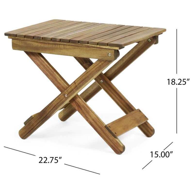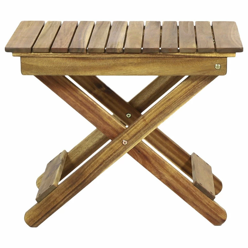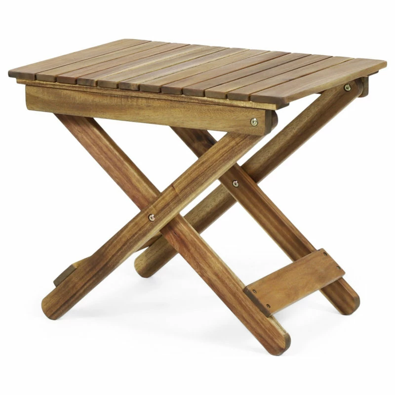 Give your outdoor seating ensemble a perfect companion that you can easily transport or store when not in use. With a classy rustic look, our side table brings a refined touch that is sure to impress guests and family alike. This accessory features stunning slat paneling and a foldable frame to enhance the way you utilize your backyard or patio space. Whether you are placing a chilled drink next to your lounge space or snacking on a plate of refreshments, our side table has you covered.