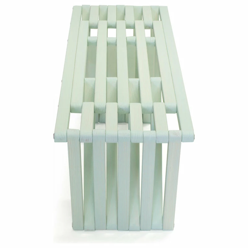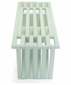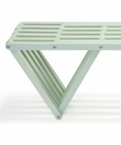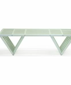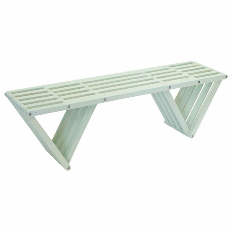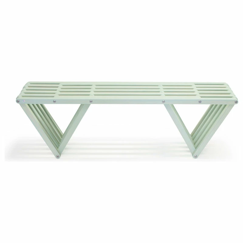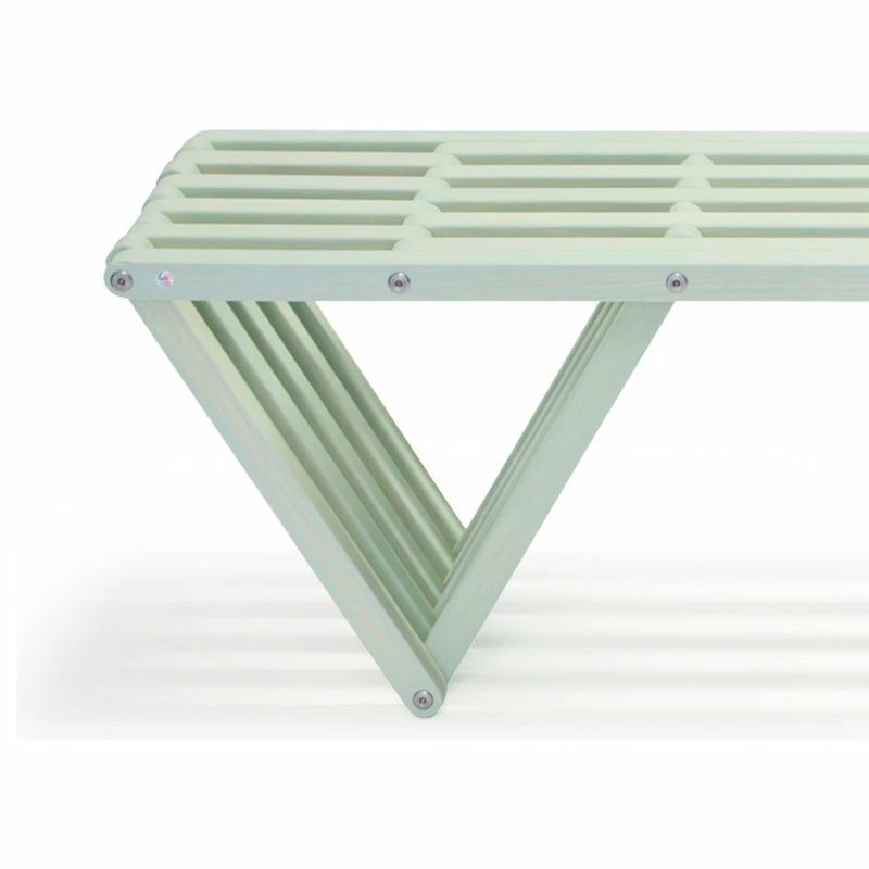 This Modern design solid wood Bench 60 is made in America. The backless design highlights an inventive look plus the added strength of the triangular legs. It is durable enough to withstand the elements inside or outdoors.