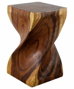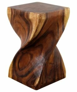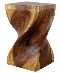 Revel in the simplistic beauty of the Sustainable Wood Big Twist Stool Embrace the sense of calm it exudes. Admire the deceptively easy design. Very impressive, this elegant piece can serve as an end table, display stand, or a stool for last minute seating. At 12 inches Square x 20 inches high and finished with Walnut tone Oil