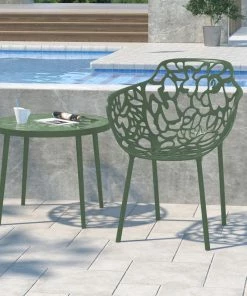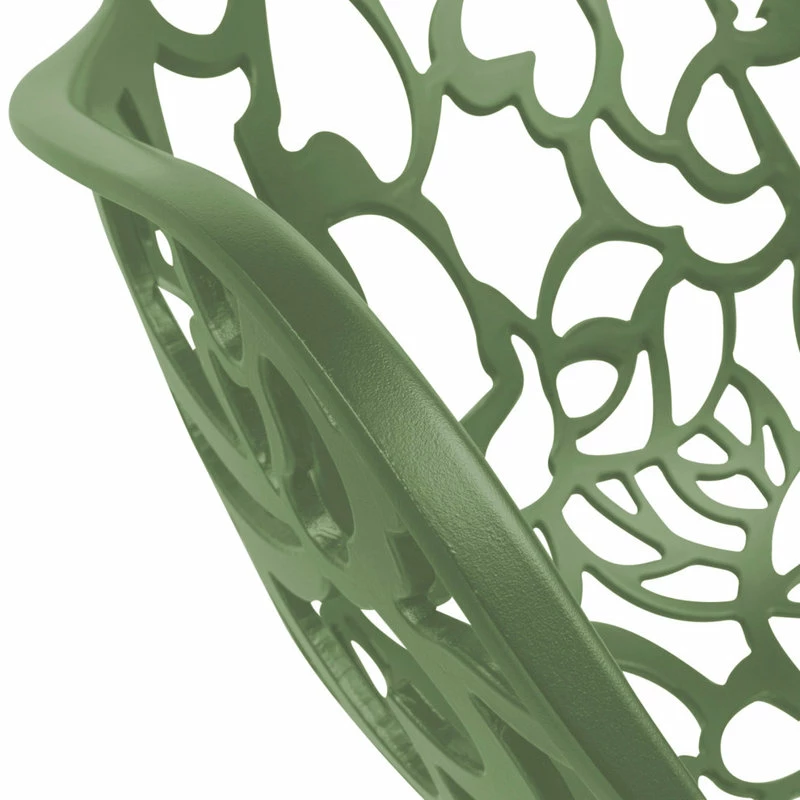 The attractive flower design of this chair is an asset for the home of any modern furniture lover. The eye-catching stylish design will have your guests raving over your decor. This is the sort of outdoor accent chair that makes a statement. The Devon Chair is constructed of an aluminum frame three times stronger than steel with a painted finish, crafted to stand the test of time. The unique cut-out design lends a modern touch of beauty that can work in a variety of spaces. Great for transforming any area in your home or backyard into an elegant dining area.