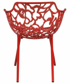 The attractive flower design of this chair is an asset for the home of any modern furniture lover. The eye catching stylish design will have your guests raving over your decor. This is the sort of outdoor accent chair that makes a statement. The Devon Chair is constructed of an aluminum frame three times stronger than steel with a painted finish, crafted to stand the test of time. The unique cut-out design lends a modern touch of beauty that can work in a variety of spaces. Great for transforming any area in your home or backyard into an elegant dining area.