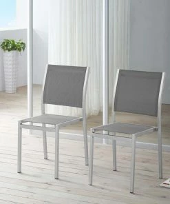 Enjoy your patio or backyard leisure time with the strong and durable Shore Outdoor Aluminum Dining Side Chair in Mesh. Made with an anodized brushed aluminum frame and breathable Textilene mesh, Shore is a breeze to assemble and comes with non-marking black plastic foot caps under the legs. Chic and minimalist, the Shore Outdoor Aluminum Dining Side Chair complements your casual gatherings with a look and functionality that you can rely on.