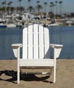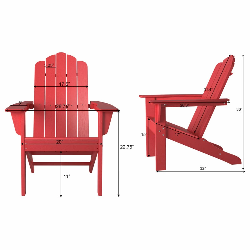 Relax in style with this charming Adirondack chair. Offering a classic touch to outdoor decor, the chair if fashioned with a sleek profile that includes a curved back and slender legs. Its waterfall front ensures comfort for lasting enjoyment on a sunny afternoon at the lake or in the backyard. Wide arms are perfect for resting a cool glass of lemonade, or pair the chair with a side table for even more space.