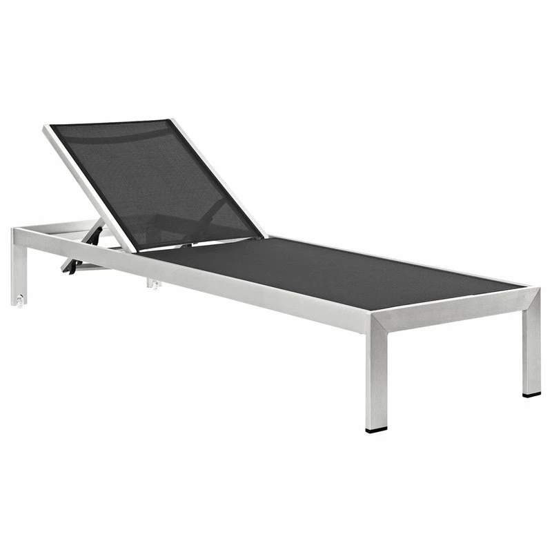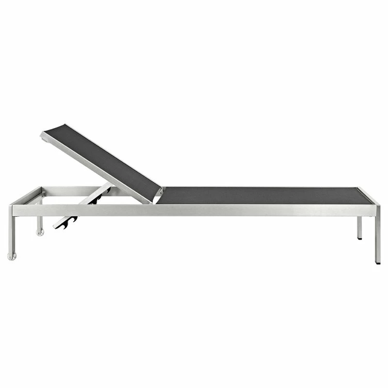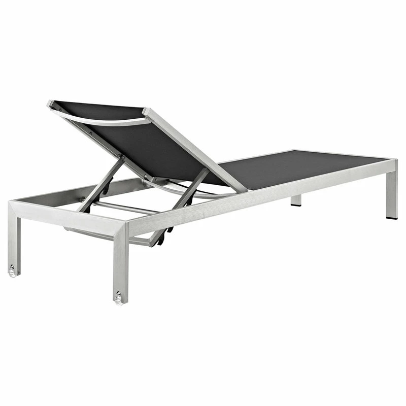 Maintain clean lines with the Shore Outdoor Patio Chaise Lounge Set in Mesh. Strong and durable, relax as you choose from four available recline positions or sunbathe while lying flush on Shores breathable Textilene mesh. Made with an anodized brushed aluminum frame, Shore Patio Chaise Lounge Chair is a breeze to assemble, comes with clear wheels for easy mobility on the top end, and non-marking black plastic foot caps under the bottom two support legs. Chic and minimalist, the Shore Outdoor Sun Lounger in Mesh is a piece built to last with the comfort and versatility youve been looking for in an outdoor lounger.