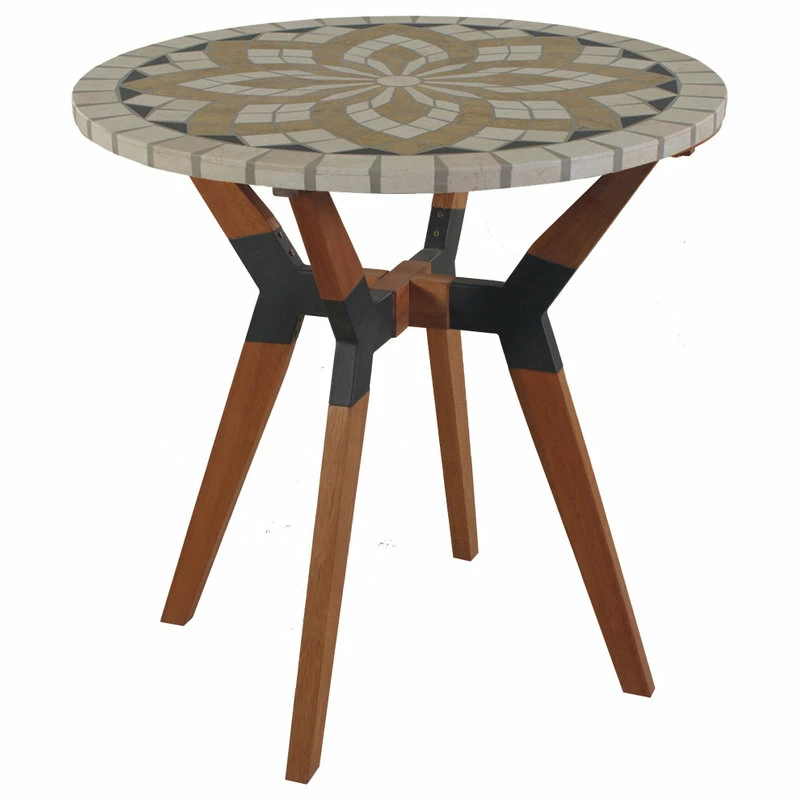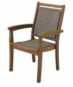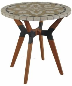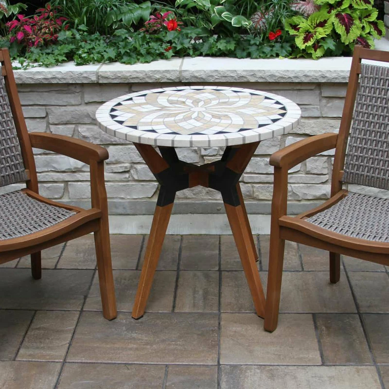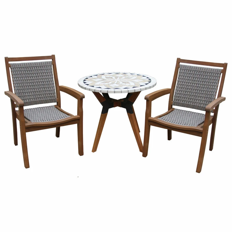 The 3 pc. Spanish Marble & Eucalyptus Bistro Set with Wicker & Eucalyptus Stacking Armchairs brings mixed material styling to your patio and garden.