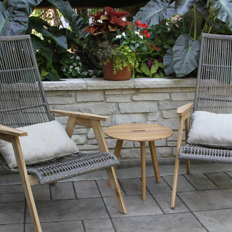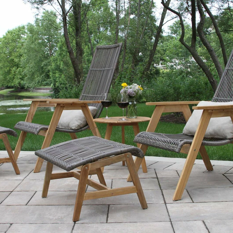 - Materials: sustainable 100% FSC teak, HDPE all-weather wicker, and Olefin fabrics