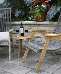 The Teak & Grey Wicker Basket Lounging Chairs are made from plantation-grown FSC Teak hardwood and All-Weather Wicker for long-lasting outdoor use and durability. The grey wicker is handwoven around a powder-coated aluminum frame, and stainless steel hardware is included.
