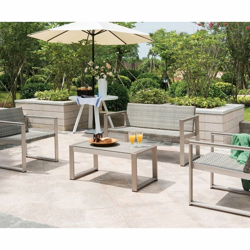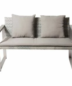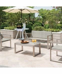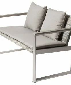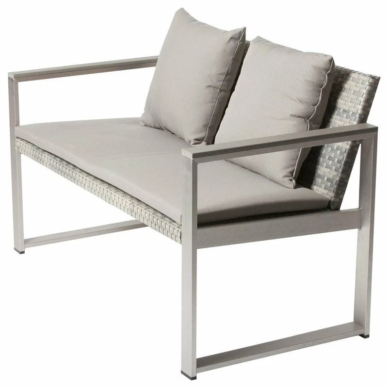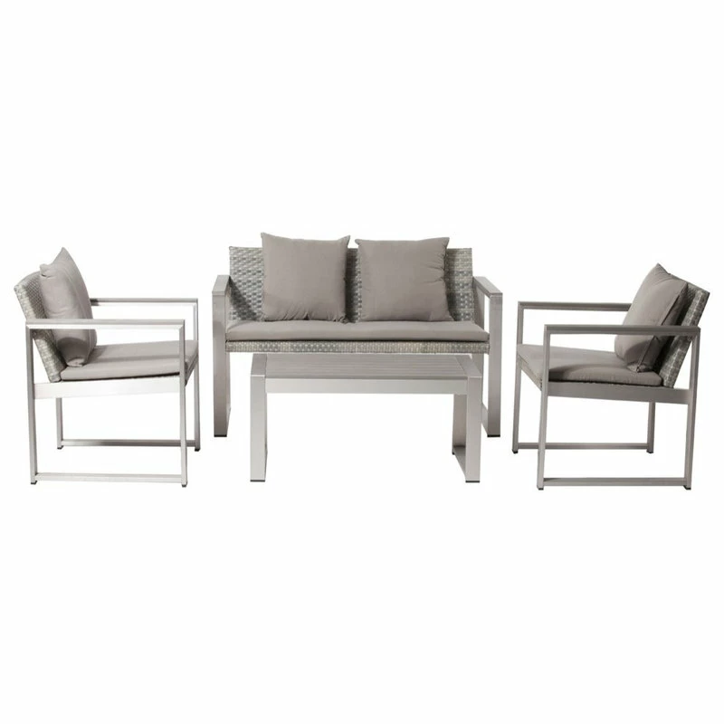 4 piece outdoor lounge set. This set comes with 2 arm sofa chairs, 1 two- seater, and 1 coffee table. You will love this set for its mix of rattan and upholestery. All pillows and cushions are removable. So, create the look you love. Seat height is 18 inches. Arm height is 25 inches; Cushion Thickness: 2 inches