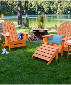 With a Curved Back, this Adirondack Set uses the same footprint and design as others but with a slightly fresher appeal. The set is made complete with the matching Ottoman and Side Table, giving you a complete look for all seasons.