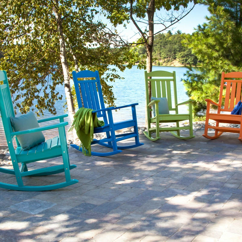 This charming POLYWOOD Presidential Rocking Chair is as comfortable as it is functional. Any outdoor space would greatly benefit if a few of these cute and comfortable rockers were strategically placed throughout the setting.