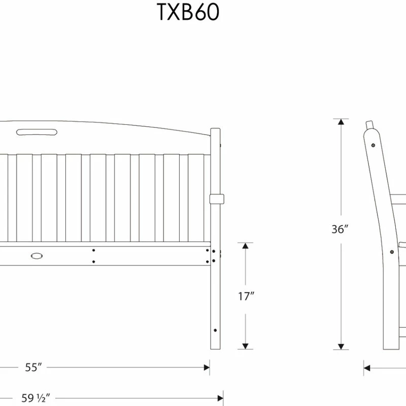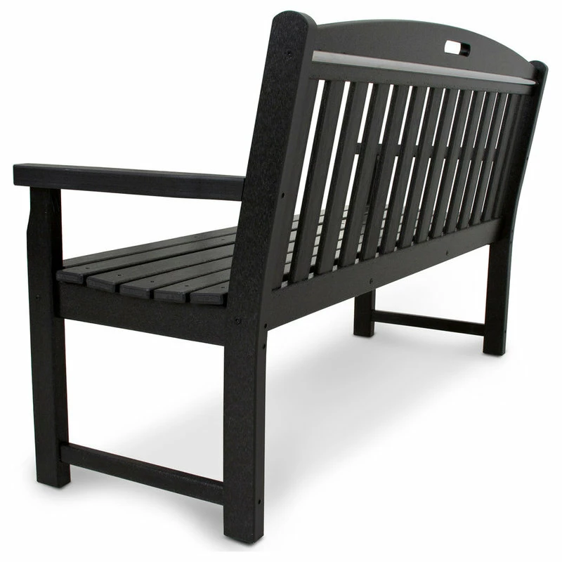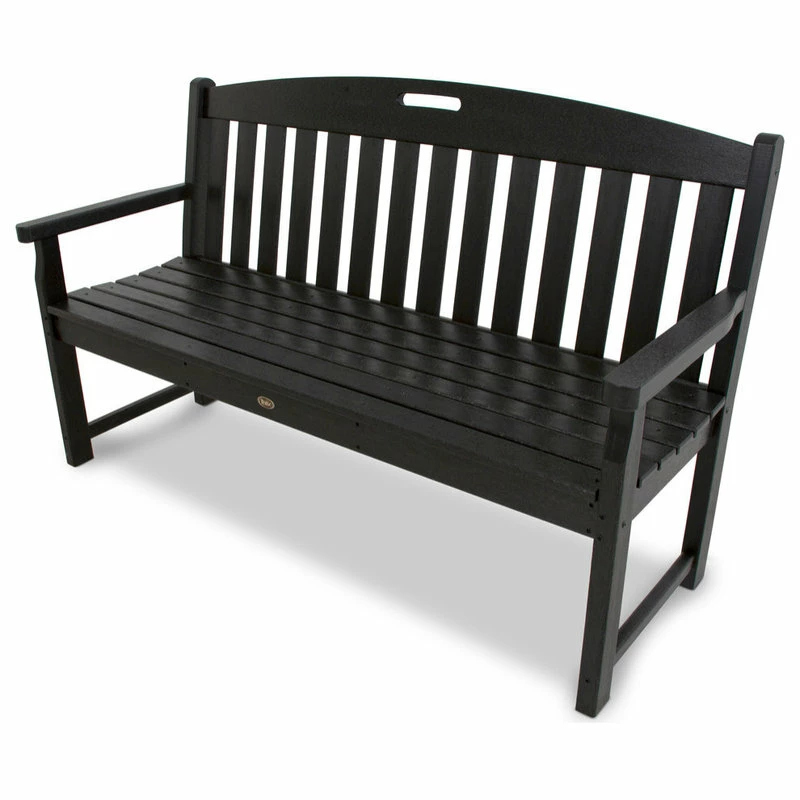 The stylish yet roomy Trex Outdoor Furniture Yacht Club 60″ Bench is an ideal way to add more seating to your outdoor entertaining space. The seat is contoured for greater comfort while the slats are designed to be easy on your back. Available in a variety of attractive, fade resistant colors, youre sure to find just the right match to coordinate with your Trex deck. Backed by a 20-year warranty and made with solid HDPE recycled lumber, you dont have to worry about it rotting, cracking or splintering like traditional wood furniture. And its extremely low-maintenance, as it doesnt require any painting or staining. It also resists weather, food and beverage stains, and environmental stresses.